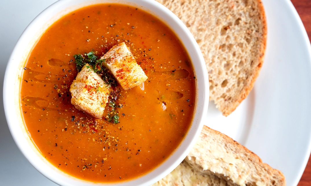 Geniet van een verrukkelijk 12-uurtje bij La Veneziana: met soep, zalm met roomkaas, een lekkere kroket en meer