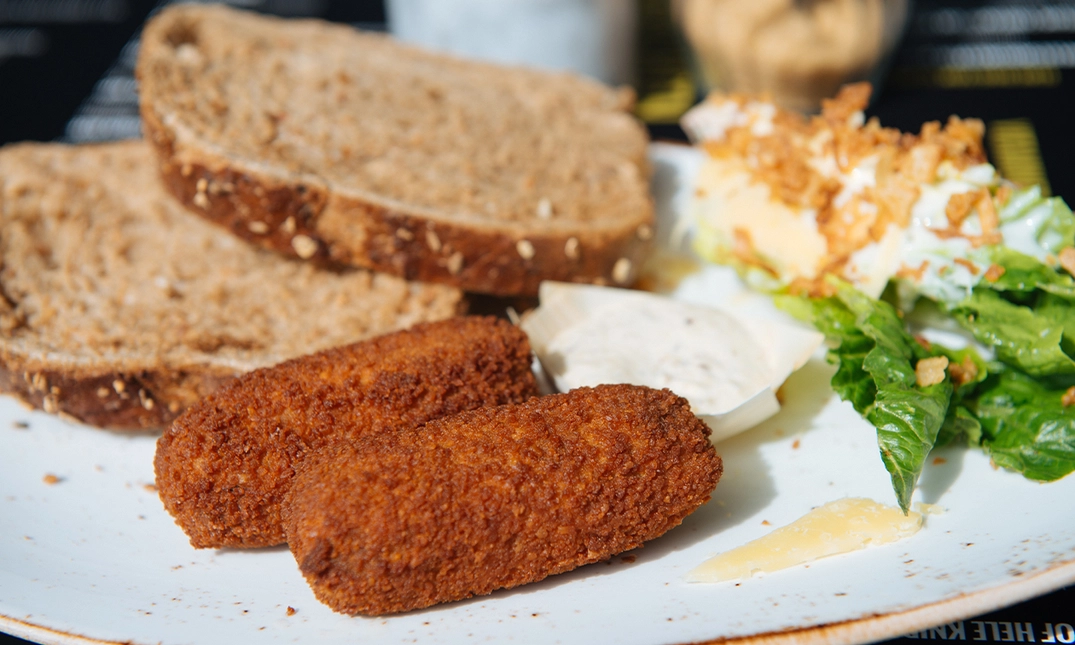 boterhammen met 2 vegetarische kroketten en mosterdmayonaise