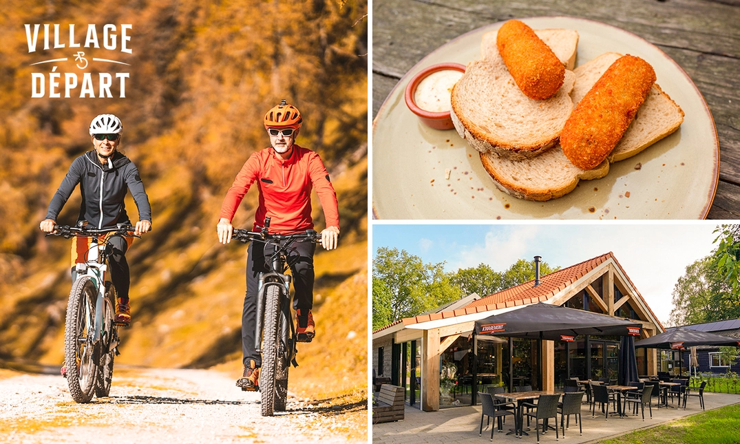 Het hart van Village Départ is De Koers, dé uitvalsbasis voor een stevige lunch, een kop koffie met een stuk huisgemaakt gebak of een verfrissend speciaalbiertje. Neem je favoriete gezelschap mee en geniet samen van een heerlijke pauze tijdens je fietstocht of wandeling. Ook wielerhelden en hun fans kunnen hun hart ophalen bij deze sfeervolle zaak. Kom bijvoorbeeld gezellig mee de koers kijken en voel je helemaal thuis in de warme en gastvrije sfeer. Ook voor vergaderingen en zakelijke evenementen is Village Départ jouw place to be. Ben je juist toe aan een fijne (mini)vakantie met bijvoorbeeld je partner of hele gezin? Kom dan sfeervol overnachten in één van de prachtige accommodaties midden in de natuur en geniet van een ontspannen tijd.