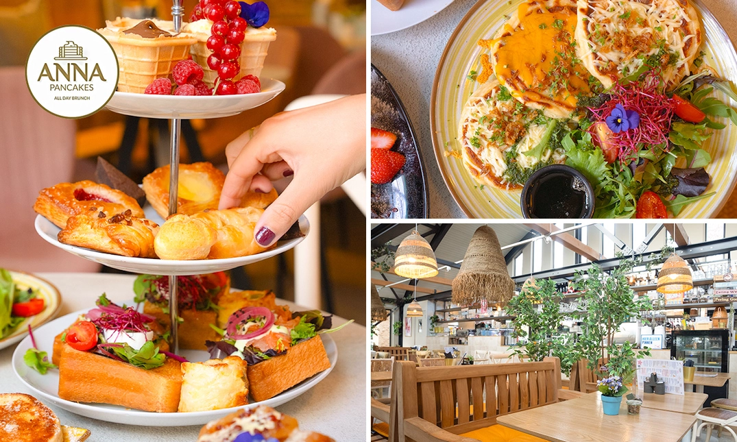 Begin je dag goed met een verrukkelijk ontbijtgerecht inclusief drankje naar keuze bij Anna Pancakes: of geniet van een heerlijke high tea met verrukkelijke hapjes en mimosa of verse jus d'orange