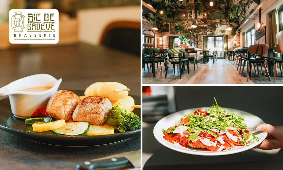 Bij Brasserie Bie de groeve geniet je van een uitgebreid 3-gangendiner in een gezellige sfeer, midden in het mooie Zuid-Limburg. Proef bijvoorbeeld scampi uit de oven als voorgerecht, gegrilde scharrelhoen als hoofdgerecht en sluit af met een warme wafel met fruit en slagroom. Laat je verrassen door de smaken van de streek en proef Limburg op z’n best. Eet smakelijk!