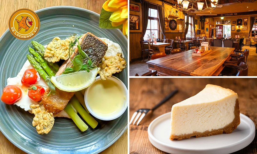 Geniet van een verrukkelijk 4-gangen keuzediner bij De Lachende Vis: met een ruim aanbod van vlees-, vis-, vegetarische en vegan gerechten is er voor ieder wat wils