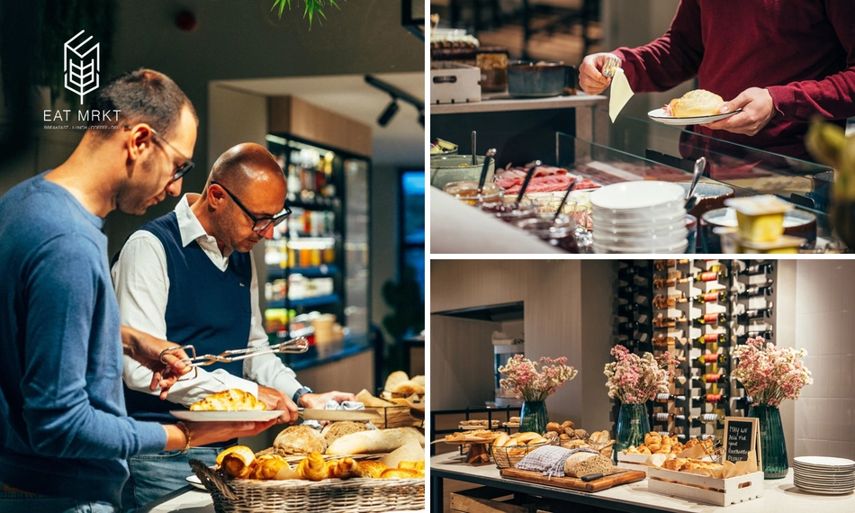 Een gezellig ontbijt, een voedzame lunch met vrienden of collega's, een koffie to go en ook nog iets meenemen voor thuis? EAT MRKT is dé breakfast en lunch hotspot in Edegem. Schuif elke ochtend aan voor het EAT MRKT ontbijtbuffet: een goede start van de dag met o.a. een heerlijke kop koffie, verse broodjes, koffiekoeken, een selectie fijne vleeswaren en kaas, gekookte eitjes en fruit.