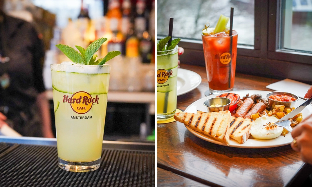 Geniet van een volledig (vegan) ontbijt naar keuze met onder meer toast, gebakken bonen, champignons en aardappels bij Hardrock Café Amsterdam: eventueel inclusief mocktail of mimosa