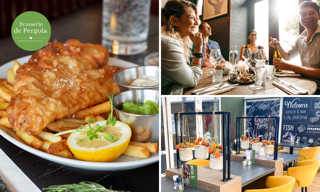 Schuif aan bij Hotel Brasserie De Pergola voor een gezellig diner in sfeervolle setting. Kies hier voor een 2- of 3-gangendiner à la carte met volop lekkere gerechten. Begin bijvoorbeeld met een verse tomatensoep, kies daarna voor malse spareribs en sluit eventueel af met een smeuïge brownie met ijs en slagroom. Alles wordt met zorg bereid, zodat jij geniet van een smakelijke avond uit. Kom gezellig langs met je favoriete gezelschap en ervaar het zelf!