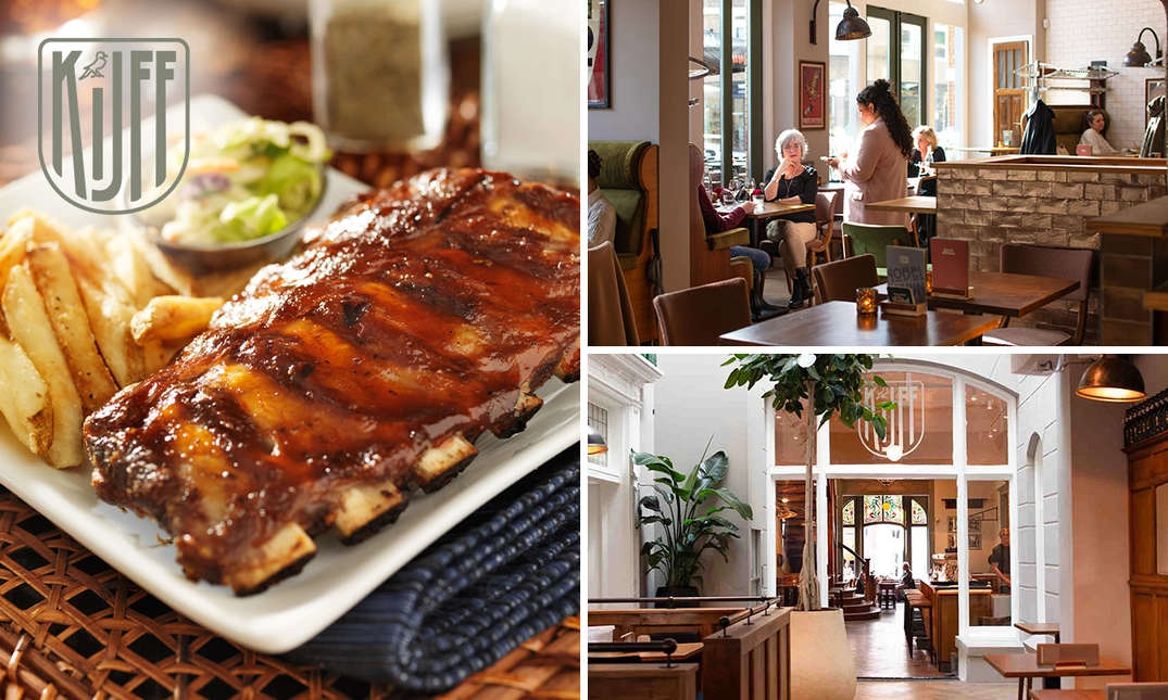 Geniet van een smakelijk 2-gangendiner met diverse heerlijke hapjes bij Kijff in hartje Groningen: geniet van carpaccio, spareribs, bloemkoolbites en meer