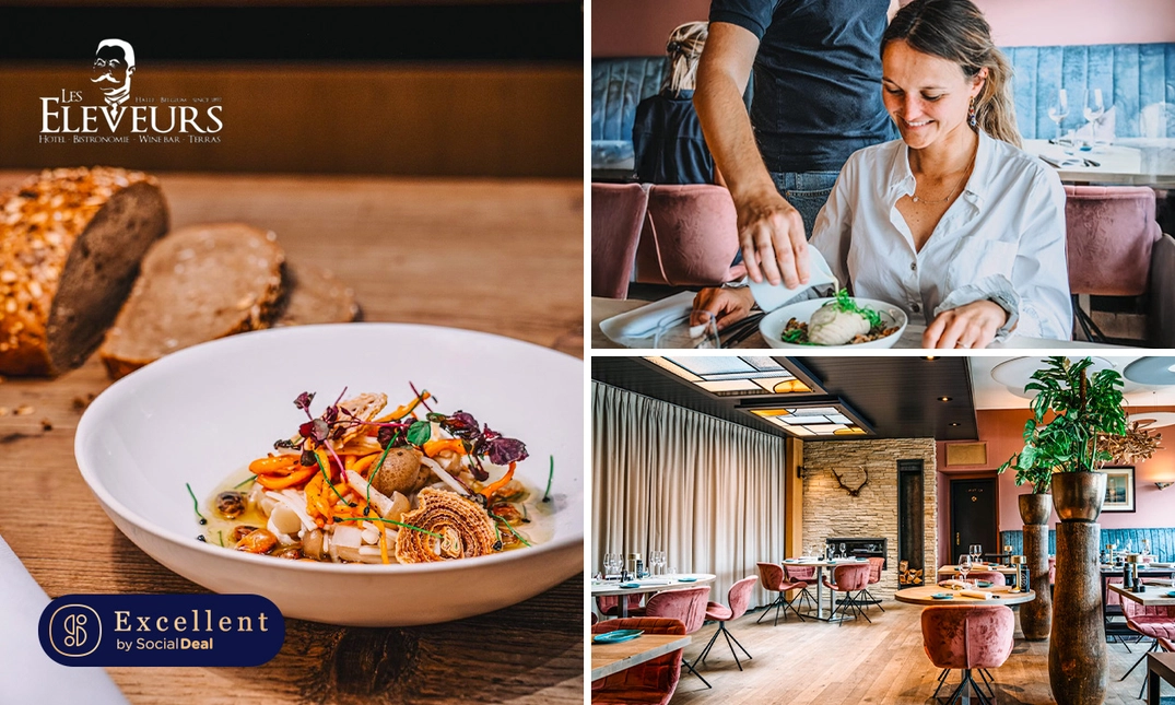 Faites-vous plaisir avec un lunch en 3 services ou un menu en 4 services au choix chez Les Eleveurs à Halle, récompensé par une note de 14/20 dans le Gault&Millau ! Vous serez chaleureusement accueilli avec un apéritif, puis vous dégusterez des plats surprenants. Les Eleveurs est le lieu idéal pour un après-midi ou une soirée entre ami(e)s, entre collègues, en famille ou avec d'autres proches. Nous vous souhaitons d'ores et déjà un excellent lunch ou dîner !