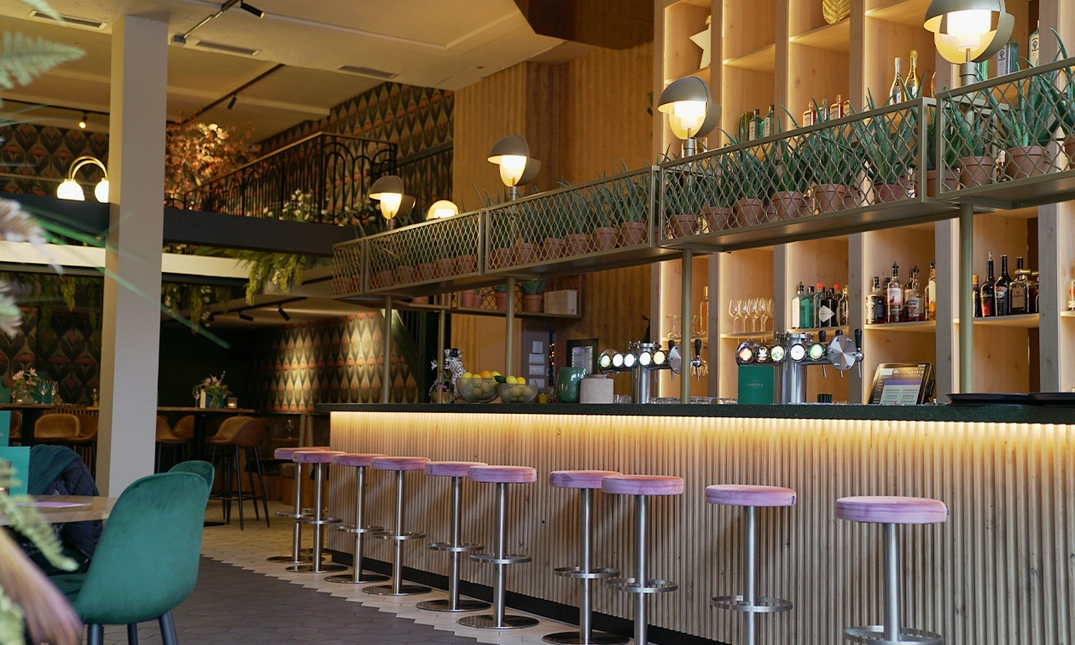Het is ook dé plek waar je 's avonds met vrienden gerechten deelt van de uitgebreide dinerkaart met internationale invloeden. Lekker onderuitgezakt op de kleurrijke banken in het restaurant of heerlijk aan de bar met een mooie cocktail.