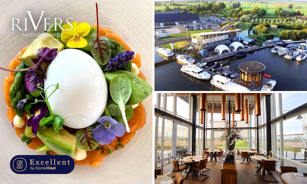 Kom heerlijk culinair dineren met een 4- of 5-gangen fine dining-diner van de chef bij Rivers Marnemoende: inclusief brood vooraf en eventueel een glas bubbels