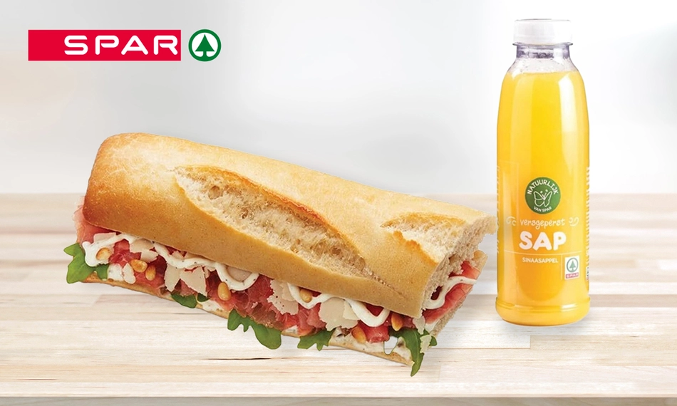 Geniet van een heerlijk belegd broodje naar keuze inclusief verse sinaasappelsap bij SPAR City Den Bosch: kom jouw bestelling gemakkelijk afhalen